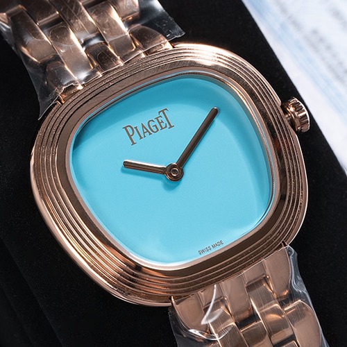 피아제 Sixtie 컬렉션은 1960년대 대담하고 우아한 주얼리 워치 디자인을 현대적으로 재해석한 여성용 럭셔리 시계입니다. 사다리꼴 형태의 독창적인 케이스 구조는 기존 원형 시계와 차별화된 실루엣을 제공하며, 주얼리와 시계의 경계를 허문 피아제 특유의 감성을 잘 보여줍니다. 29mm 사이즈의 케이스는 손목이 가는 여성에게 이상적인 비율을 갖추고 있으며, 전체적으로 슬림한 두께로 착용 시 우아한 밀착감을 제공합니다. 다이얼에는 다이아몬드 인덱스가 세팅되어 빛의 각도에 따라 은은하게 반짝이며, 로즈골드 컬러 케이스와 브레이슬릿이 고급스러운 분위기를 완성합니다. 고정밀 쿼츠 무브먼트를 탑재해 정확한 시간 유지와 간편한 관리가 가능하며, 드레스 워치뿐 아니라 포멀한 일상 스타일에도 자연스럽게 어울립니다. 예술성과 실용성을 동시에 만족시키는 피아제의 대표적인 여성용 하이엔드 주얼리 워치입니다.