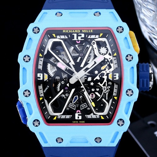 리차드 밀 RM 35-03 오토매틱 라파엘 나달은 극한의 스포츠 환경과 일상 착용을 동시에 고려해 설계된 하이엔드 스켈레톤 오토매틱 시계다. 전체 무게는 약 88.8g으로 투르비옹이 아닌 자동 무브먼트 모델 중에서도 매우 가벼운 편에 속하며, 케이스 두께는 약 13.5mm로 스포티한 존재감을 유지한다. 케이스는 석영 섬유 NTPT와 카본 TPT 복합 소재를 사용해 뛰어난 내충격성과 경량성을 확보했으며, 컬러에 따라 블랙 TPT, 블루 NTPT, 화이트 NTPT 등 다양한 소재 조합이 적용된다. 다이얼은 완전 스켈레톤 구조로 설계되어 전면에서 기어 트레인, 브릿지, 자동 와인딩 시스템의 작동을 직접 감상할 수 있다. 러버 스트랩과 인체공학적 케이스 디자인은 손목 밀착력을 높여 장시간 착용에도 안정적인 착용감을 제공하며, 스포츠 워치이면서도 리차드 밀 특유의 기계미와 고급감을 동시에 만족시키는 모델이다.