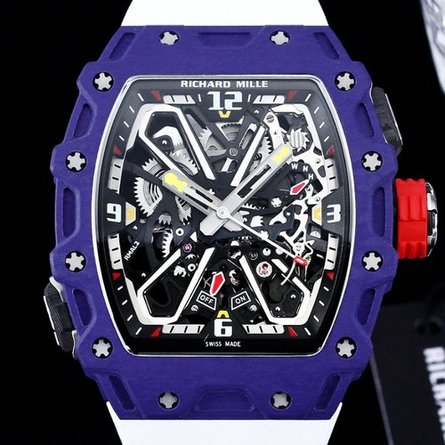 리차드 밀 RM 35-03 오토매틱 라파엘 나달은 극한의 스포츠 환경과 일상 착용을 동시에 고려해 설계된 하이엔드 스켈레톤 오토매틱 시계다. 전체 무게는 약 88.8g으로 투르비옹이 아닌 자동 무브먼트 모델 중에서도 매우 가벼운 편에 속하며, 케이스 두께는 약 13.5mm로 스포티한 존재감을 유지한다. 케이스는 석영 섬유 NTPT와 카본 TPT 복합 소재를 사용해 뛰어난 내충격성과 경량성을 확보했으며, 컬러에 따라 블랙 TPT, 블루 NTPT, 화이트 NTPT 등 다양한 소재 조합이 적용된다. 다이얼은 완전 스켈레톤 구조로 설계되어 전면에서 기어 트레인, 브릿지, 자동 와인딩 시스템의 작동을 직접 감상할 수 있다. 러버 스트랩과 인체공학적 케이스 디자인은 손목 밀착력을 높여 장시간 착용에도 안정적인 착용감을 제공하며, 스포츠 워치이면서도 리차드 밀 특유의 기계미와 고급감을 동시에 만족시키는 모델이다.