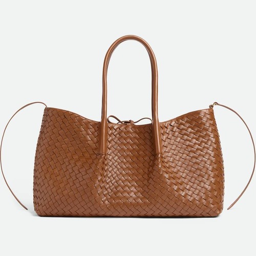본 제품은 라지 사이즈(43cm)로 넉넉한 수납력을 갖추고 있으며, 10mm 폭의 인트레치아토 위빙을 적용해 단정하면서도 고급스러운 질감을 완성했습니다. 내부는 부드러운 스웨이드 계열 안감으로 마감되어 내용물을 안정적으로 보호하며, 양면 사용이 가능한 구조로 연출에 따라 분위기 전환이 가능합니다. 네 방향으로 길게 이어진 가죽 스트랩은 손잡이 형태를 다양하게 조절할 수 있어 실용성과 디자인 완성도를 동시에 만족시키며, 브랜드 로고를 전면에 드러내지 않는 보테가 베네타 특유의 절제된 럭셔리 감성이 잘 드러나는 모델입니다.