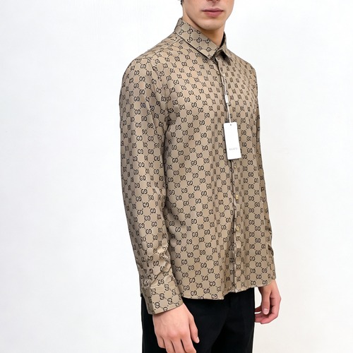 고객님께서 지금보시고 계시는 상품은 GUCCI 25SS 시즌을 기반으로 제작된 남성용 GG 모노그램 셔츠입니다. 구찌를 대표하는 GG 패턴을 전체적으로 균형감 있게 배치하여 브랜드 아이덴티티를 명확하게 드러내며, 과하지 않으면서도 고급스러운 인상을 전달합니다. 원단은 실크 터치감을 구현한 고급 폴리에스터 기반 혼방 소재를 사용하여 부드럽고 매끄러운 촉감을 제공하며, 착용 시 피부에 달라붙지 않고 통기성이 우수해 장시간 착용에도 쾌적함을 유지합니다. 전체적인 실루엣은 클래식한 레귤러 핏으로 설계되어 체형에 자연스럽게 떨어지며, 단독 착용은 물론 재킷이나 니트 이너로도 활용도가 높습니다. 봉제 마감은 균일하고 깔끔하게 처리되어 셔츠의 완성도를 높였으며, 포멀한 자리부터 세미 캐주얼, 데일리 스타일까지 폭넓게 매치 가능한 아이템입니다.