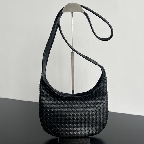 고객님께서 지금보시고 계시는 상품은 보테가 베네타의 아카이브 무드에서 출발한 Small Veneto 라인의 인트레치아토 크로스바디 백입니다. 둥글게 흐르는 실루엣이 몸에 자연스럽게 밀착되어 착용감이 편안하며, 촘촘한 인트레치아토 위빙이 고급스러운 입체감을 만들어 줍니다. 부드러운 람스킨(나파 계열) 특유의 유연함이 살아 있어 계절감에 크게 구애받지 않고 데일리부터 미니멀한 포멀 룩까지 폭넓게 활용하시기 좋습니다. 상단 지퍼 클로저로 내용물을 안정적으로 보관할 수 있고, 내부는 스웨이드 라이닝으로 마감되어 손에 닿는 촉감과 완성도를 높였습니다. 슬림한 폭 대비 수납 동선이 좋아 휴대폰, 카드지갑, 차키 등 필수 소지품 중심으로 깔끔하게 구성하시기 좋습니다.