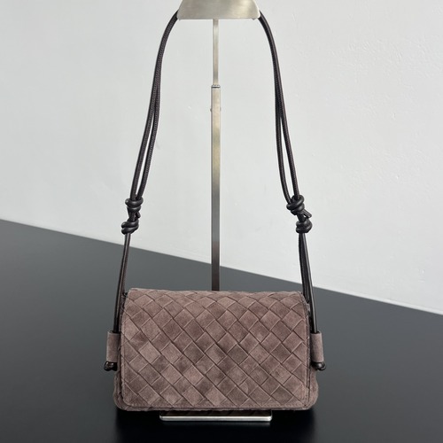 고객님께서 지금보시고 계시는 상품은 보테가 베네타의 Notturno(노투르노) 크로스바디 라인 감성을 담은 미니 사이즈 가방입니다. 인트레치아토 위빙 텍스처가 전면에 균일하게 살아 있으며, 부드러운 스웨이드 터치의 레더 표면으로 톤 다운된 브라운 컬러가 고급스럽게 연출됩니다. 상단은 더블 지퍼 구조로 안정적으로 여닫을 수 있고, 내부는 독립 수납 공간이 분리되어 소지품을 깔끔하게 나눠 담기 좋습니다. 또한 중앙 지퍼 수납층이 별도로 구성되어 카드, 키, 이어폰처럼 작은 물건을 안전하게 보관하기에 유리합니다. 길이 조절 가능한 스트랩으로 크로스/숄더 모두 활용 가능하며, 21×11×9cm 비율로 스마트폰과 필수 소지품 중심의 데일리 미니백을 찾으시는 고객님께 잘 맞습니다.