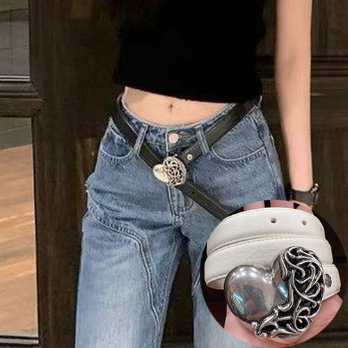 버클: 하트 모티브, 조각 디테일의 실버 톤 마감