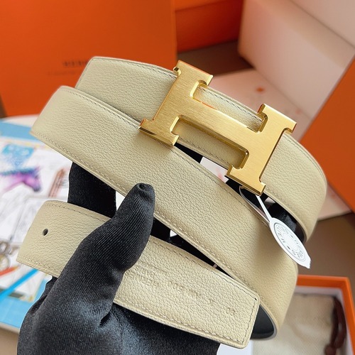 고객님께서 지금보시고 계시는 상품은 에르메스의 아이코닉한 H 버클이 적용된 3.2cm 폭 리버서블 벨트입니다. 클래식하면서도 단정한 비율의 32mm 폭으로 제작되어 데님부터 슬랙스, 원피스까지 폭넓게 매치하기 좋으며, 코디에 고급스러운 중심을 잡아주는 역할을 합니다. 스트랩은 에르메스의 대표 그레인 텍스처로 사랑받는 Togo 송아지 가죽으로 구성되어 촘촘한 엠보 결이 살아 있고 생활 스크래치에 강한 편이라 데일리로 활용도가 높습니다. 양면 리버서블 구조로 한쪽은 밝은 아이보리 톤, 반대쪽은 블랙 톤으로 연출되어 스타일에 따라 분위기를 즉시 전환하실 수 있습니다. 버클은 골드 피니시로 마감되어 따뜻하고 우아한 광택이 특징이며, 미니멀한 룩에도 확실한 포인트가 되어 드립니다. 한 번 구매로 두 가지 컬러 벨트를 소장하는 효과를 제공하는 실용적인 클래식 아이템입니다.