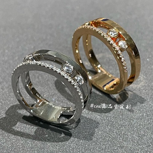 고객님께서 지금보시고 계시는 상품은 Messika(메시카)의 시그니처 ‘Move’ 컬렉션을 대표하는 클래식 링으로, 중앙에 세팅된 3개의 다이아몬드가 움직임에 따라 자연스럽게 롤링되며 빛을 반사하는 구조가 핵심 포인트입니다. 링 상단의 프레임 안에서 다이아가 흔들리듯 움직이기 때문에 손동작이 많을수록 은은한 반짝임이 더 살아나고, 과하게 화려하지 않으면서도 ‘주얼리의 존재감’은 분명하게 전달됩니다. 밴드 라인에는 파베 다이아 디테일이 더해져 전체적으로 더 촘촘하고 고급스러운 광채를 연출해드리며, 단독 착용은 물론 다른 링과 함께 레이어드해도 중심 라인이 깔끔하게 유지되어 데일리 스타일링에 활용도가 높습니다. 컬러는 실버 톤 무드의 화이트 골드와 로즈 골드 두 가지로 구성되어, 모던한 분위기부터 부드러운 분위기까지 취향에 맞춰 선택하시기 좋습니다. 매끈한 폴리싱 마감과 섬세한 스톤 세팅이 조화를 이루어 오래 착용해도 세련된 무드를 유지해드리는 아이템입니다.