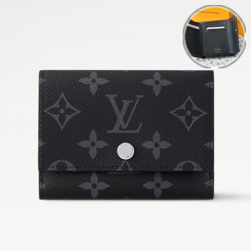 고객님께서 지금보시고 계시는 상품은 루이비통 Victor Wallet로, 모노그램 이클립스 코티드 캔버스의 시그니처 패턴과 블랙 톤의 정돈된 분위기가 매력적인 컴팩트 지갑입니다. 슬림한 실루엣 안에 카드, 지폐, 영수증을 분리해 수납할 수 있는 구성이 갖춰져 일상 사용에 실용적이며, 외부에는 지퍼 포켓이 더해져 동전이나 작은 소지품을 깔끔하게 보관하기 좋습니다. 지갑을 열었을 때 카드 슬롯 구성이 한눈에 정리되어 빠르게 꺼내 쓰기 편하고, 지퍼 포켓은 사용 중 내용물이 흘러나오지 않도록 안정적인 수납을 도와드립니다. 11.5 × 9 × 2.5cm 사이즈로 손에 쥐기 좋고 포켓이나 미니백에도 부담 없이 들어가며, 출퇴근용 데일리 지갑부터 여행용 서브 지갑까지 폭넓게 활용하실 수 있습니다.
