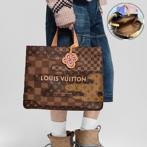 고객님께서 지금보시고 계시는 상품은 루이비통 쇼퍼 토트백으로, 모노그램 캔버스 위에 모노그램 리버스와 다미에 패턴을 조합한 보로 스타일 패치워크 디테일이 강한 포인트가 되는 모델입니다. 40 사이즈의 넉넉한 수납력을 갖춰 노트북, 서류, 파우치, 물병까지 여유 있게 담기 좋고, 상단 더블 핸들로 안정적인 토트 착용이 가능합니다. 탈부착 스트랩을 활용하면 숄더 착용까지 가능해 이동이 많은 일정에서도 편리하며, 오픈 타입 구조로 넣고 빼는 동선이 빠르게 정리됩니다. 전면 레터링 디테일과 패치워크 대비감이 스타일을 확실하게 살려주어 데일리룩은 물론 출근룩에도 잘 어울립니다. 하나로 수납과 포인트를 동시에 해결하고 싶은 고객님께 추천드리는 쇼퍼 토트입니다.