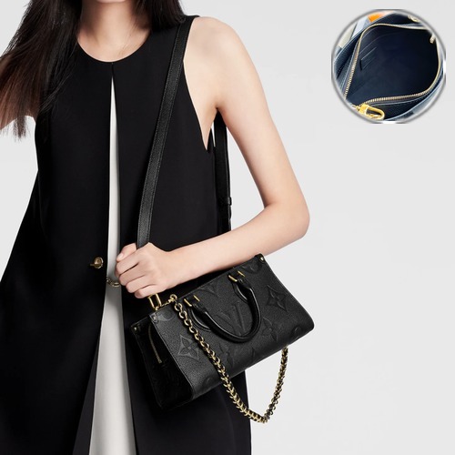 - 모노그램 앙프렝뜨 엠보싱 레더로 시그니처 무드 강화