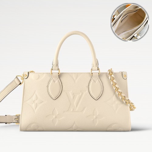 고객님께서 지금보시고 계시는 상품은 루이비통 온더고 이스트 웨스트 모델로, 컴팩트한 25 사이즈에 모노그램 앙프렝뜨 엠보싱 레더 질감을 더해 시그니처 무드를 단정하게 완성한 토트백입니다. 상단 더블 핸들로 손에 들었을 때 균형이 좋고, 스트랩을 활용하면 숄더와 크로스 착용까지 가능해 일정에 맞춘 활용이 편리합니다. 길이감이 긴 이스트 웨스트 비율 덕분에 휴대폰, 지갑, 파우치 같은 필수 소지품을 깔끔하게 정리하기 좋으며, 블랙 컬러의 정돈된 분위기로 캐주얼부터 세미 포멀까지 폭넓게 매치할 수 있습니다. 엠보싱 모노그램 텍스처가 은은한 존재감을 만들어 주고, 견고한 바디 구조가 스타일을 깔끔하게 잡아줍니다. 데일리부터 외출까지 활용도 높은 미니 토트를 찾는 고객님께 잘 어울리는 구성입니다.