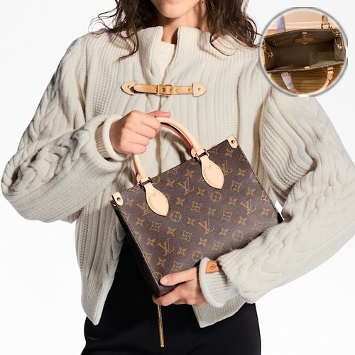 고객님께서 지금보시고 계시는 상품은 루이비통 OnTheGo 스몰 Mon Monogram 토트백으로, 클래식한 모노그램 캔버스에 개성 있는 패치 디테일을 더해 데일리룩에 포인트를 주기 좋은 아이템입니다. 스몰 사이즈이지만 25cm 길이의 실용적인 비율로 지갑, 휴대폰, 파우치 등 필수 소지품을 깔끔하게 담기 좋고, 각이 살아 있는 토트 실루엣이 스타일을 단정하게 정리해 줍니다. 토론 가죽 탑핸들로 손에 들었을 때 균형감이 좋으며, 길이 조절이 가능한 스트랩으로 숄더와 크로스를 상황에 맞게 활용할 수 있어 이동이 많은 일정에도 편리합니다. 전면의 멀티 패치 디테일이 심플한 코디에도 분위기를 살려주고, 모노그램 특유의 클래식함과 함께 감각적인 무드를 완성해 줍니다. 데일리 토트백을 찾으면서도 확실한 포인트가 필요한 분께 추천드립니다.