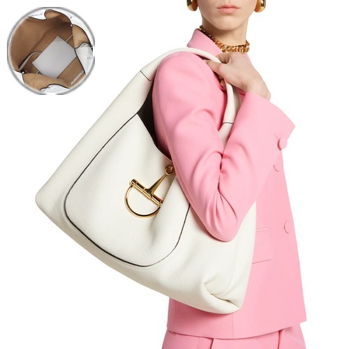 고객님께서 지금보시고 계시는 상품은 구찌 Softbit 라인의 그레인 레더 라지 숄더백으로, 반마구 형태의 버클 디테일이 브랜드의 클래식한 무드를 또렷하게 완성해주는 디자인입니다. 부드럽게 떨어지는 실루엣과 넉넉한 가로 폭으로 수납력이 뛰어나 데일리 외출은 물론 출근·여행까지 폭넓게 활용하시기 좋습니다. 자석 여밈 구조로 사용 동선이 간편하며, 내부에 탈착 가능한 파우치가 포함되어 작은 소지품을 따로 정리하기에도 편리합니다. 46 × 26 × 16cm 사이즈로 아이폰 Pro Max급 휴대폰, 이어폰, 장지갑, 파우치 등 다양한 아이템을 한 번에 담기 좋고, 카드 컬러의 차분한 톤이 코디를 안정적으로 정돈해 줍니다. 골드 톤 포인트 하드웨어가 전체 완성도를 높여 세미 포멀 룩에도 자연스럽게 매치됩니다.