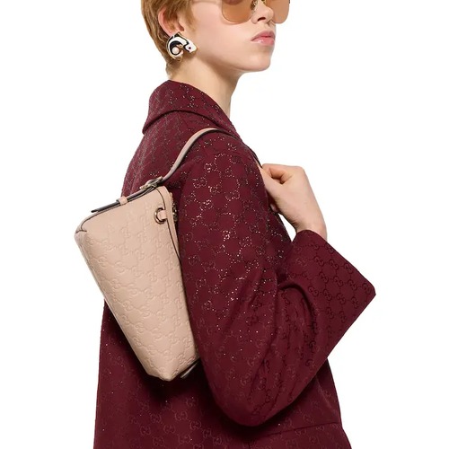 - 살구색 GG 엠보싱 가죽 외부로 포인트가 선명한 디자인