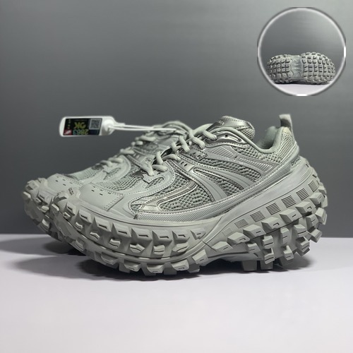 | 상품 정보 | Balenciaga Defender Rubber Platform Sneakers는 Balenciaga의 2022년 대표 스니커즈로, 타이어 트레드 형태의 러버 아웃솔이 특징입니다. 어퍼는 메시와 나일론 혼합으로 통기성과 내구성을 제공합니다. 브랜드 로고는 혀부분과 뒤꿈치에 장식되어 있습니다. 플랫폼 솔은 충격 흡수 및 안정감을 강화한 구조입니다. 이 모델은 남녀 공용으로 다양한 사이즈 옵션을 갖추고 있습니다. |