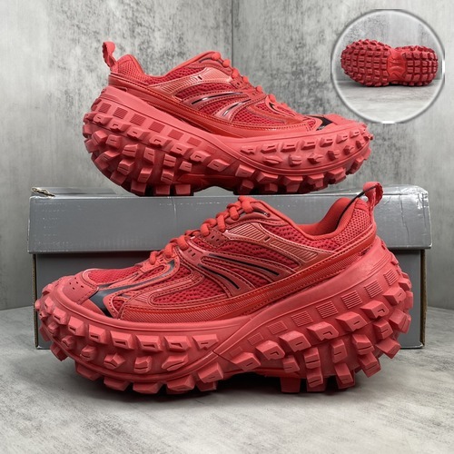 | 상품 정보 | Balenciaga Defender Rubber Platform Sneakers는 Balenciaga의 2022년 대표 스니커즈로, 타이어 트레드 형태의 러버 아웃솔이 특징입니다. 어퍼는 메시와 나일론 혼합으로 통기성과 내구성을 제공합니다. 브랜드 로고는 혀부분과 뒤꿈치에 장식되어 있습니다. 플랫폼 솔은 충격 흡수 및 안정감을 강화한 구조입니다. 이 모델은 남녀 공용으로 다양한 사이즈 옵션을 갖추고 있습니다. |