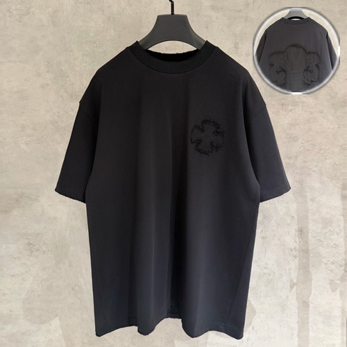 고객님께서 지금보시고 계시는 상품은 CHROME HEARTS(크롬하츠) 플로럴 크로스 패치 자수 디테일을 적용한 340g 헤비웨이트 반팔 티셔츠입니다. 탄탄한 더블사 원단을 사용해 묵직한 두께감과 안정적인 실루엣을 구현했으며, 전체 워싱 공정을 거쳐 자연스러운 터치감과 부드러운 착용감을 완성했습니다. 전면에는 미니 크로스 자수 포인트를 배치하고, 후면에는 입체적인 플로럴 크로스 패치를 더해 브랜드 특유의 아이덴티티를 강조했습니다. 가장자리에는 디스트레스(마모) 가공을 적용해 빈티지 감성을 살렸으며, 형태 안정성과 수축 최소화를 고려한 제작으로 데일리 웨어는 물론 스트릿 스타일링에도 활용도가 높습니다.