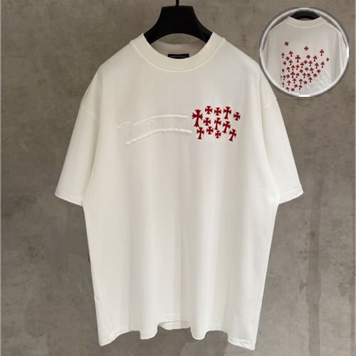 고객님께서 지금보시고 계시는 상품은 CHROME HEARTS(크롬하츠) 레드 크로스 자수 디테일과 플로럴 패치가 결합된 340g 헤비웨이트 반팔 티셔츠입니다. 밀도 높은 더블사 원단을 사용해 탄탄한 두께감과 묵직한 핏감을 완성했으며, 전체 워싱 공정을 통해 자연스러운 터치감과 안정적인 착용감을 구현했습니다. 전면에는 레드 컬러 크로스 자수 포인트를 배치하고, 후면에는 플로럴 패치 위에 다수의 레드 크로스 자수를 더해 입체적인 디자인을 완성했습니다. 가장자리에는 디스트레스 가공을 적용해 빈티지한 무드를 강조했으며, 형태 유지와 수축 최소화를 고려한 제작으로 데일리 웨어와 스트릿 스타일 모두에 잘 어울리는 아이템입니다.