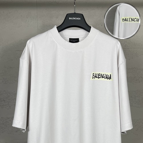 고객님께서 지금보시고 계시는 상품은 BALENCIAGA(발렌시아가) SS26 시즌 테이프 로고 프린트가 적용된 260g 워싱 코튼 오버핏 반팔 티셔츠입니다. 고밀도 코튼 원단을 사용해 탄탄하면서도 부드러운 착용감을 제공하며, 전체 워싱 공정을 거쳐 자연스러운 컬러감과 빈티지한 무드를 완성했습니다. 전면에는 테이프 형식의 BALENCIAGA 로고 프린트를 적용해 스트릿 감성을 강조했으며, 입체적인 프린트 표현으로 시각적 포인트를 더했습니다. 여유 있는 OS(오버사이즈) 실루엣으로 남녀 모두 편안하게 착용 가능하며, 단독 착용은 물론 다양한 하의와 매치해 스타일링하기 좋은 데일리 아이템입니다.
