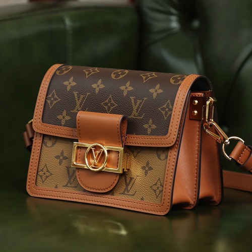 고객님께서 지금보시고 계시는 상품은 루이비통의 클래식 라인을 현대적으로 재해석한 미니 도핀 모노그램 리버스 숄더백입니다. 브랜드 시그니처 모노그램 캔버스와 모노그램 리버스 패턴을 조합하여 입체적인 대비와 세련된 감각을 동시에 표현한 아이코닉 모델입니다. 구조적인 사각 실루엣과 전면 LV 서클 락 장식이 조화를 이루며 고급스럽고 안정적인 디자인을 완성합니다. 내부는 분리형 수납 구조로 제작되어 소지품을 효율적으로 정리할 수 있으며 체인과 가죽 스트랩을 활용해 숄더 또는 크로스 스타일로 다양하게 연출 가능합니다. 컴팩트한 사이즈와 뛰어난 활용도를 갖춘 모델로 데일리 착용부터 외출 및 모임 자리까지 폭넓게 활용할 수 있는 루이비통 대표 미니 백입니다.