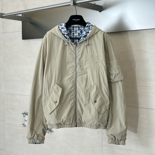 고객님께서 지금보시고 계시는 상품은 루이비통 2026 S/S 컬렉션의 리버서블 올오버 프린트 윈드브레이커 재킷입니다. 한 벌로 두 가지 분위기를 즐길 수 있는 양면 디자인이 핵심이며, 한쪽 면은 블루 톤의 올오버 패턴으로 존재감을 강하게 살렸고 다른 한쪽 면은 베이지 컬러의 미니멀한 무드로 깔끔하게 연출됩니다. 후드가 일체형으로 구성되어 캐주얼한 착장에 자연스럽게 어울리며, 전면 지퍼 클로징으로 간편하게 착용할 수 있습니다. 전면 포켓은 플랩 디테일이 더해져 실용성과 디자인 완성도를 함께 잡았고, 가슴에는 루이비통 시그니처 자수 디테일이 들어가 단정한 포인트를 제공합니다. 전체적으로 여유 있는 실루엣으로 레이어드가 편하며, 데님·조거·치노 등 다양한 하의와 매치해도 균형이 좋아 데일리 아우터로 활용도가 높습니다.