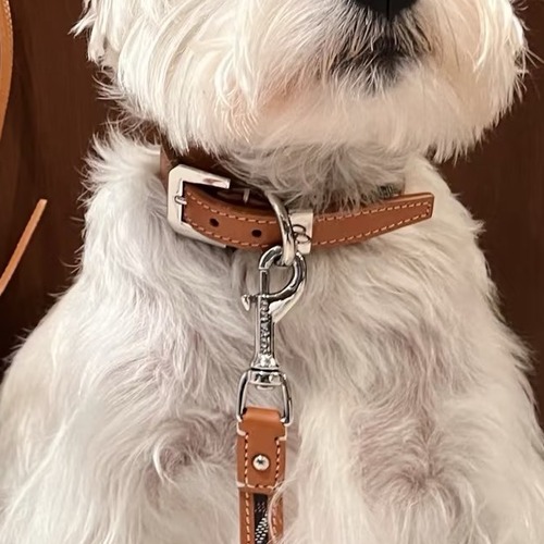 고야드 특유의 쉐브론 패턴이 스트랩 전면에 적용된 펫 목줄과 리드줄 세트로, 그린 컬러 바디와 스티치 디테일이 조화를 이루어 세련된 산책 스타일을 완성합니다. 목줄은 S, M, L 세 가지 사이즈로 구성되어 반려견의 목둘레에 맞춰 선택할 수 있으며, 스트랩 안쪽은 부드럽게 마감되어 일상 산책 시 안정적인 착용감을 제공합니다. 리드줄은 견고한 웨빙 구조와 메탈 스냅 훅을 적용해 빠르고 안정적인 연결이 가능하며, 손에 잡히는 두께감으로 컨트롤이 용이합니다. 가죽 트리밍과 메탈 버클의 조합으로 내구성과 디자인을 동시에 고려하였으며, 브랜드 감성이 돋보이는 프리미엄 펫 액세서리로 활용도가 높습니다.
