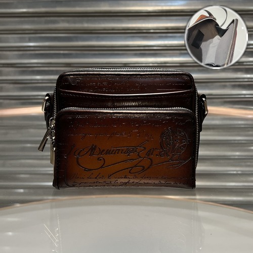 베를루티 횡형 미니 크로스백입니다. 가로형 실루엣이 주는 세련된 비율과