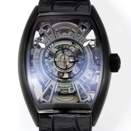 또한 고급 악어가죽 스트랩과 정교한 버클 시스템이 적용되어 하이엔드 드레스워치로서 완성도를 높였으며, 프랭크 뮬러의 기술력과 예술성이 결합된 컬렉터급 투르비용 시계로 평가받는 모델입니다.