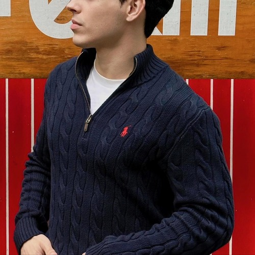 Ralph Lauren Cable Knit Half Zip Sweater Navy 랄프로렌 케이블 니트 하프 집업 스웨터 네이비 |