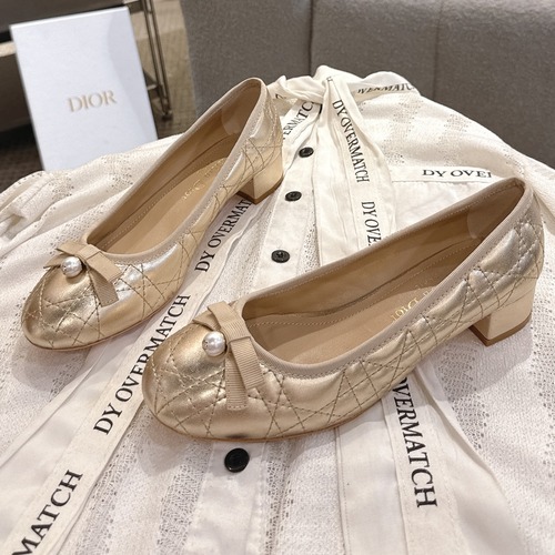 Dior CD Pearl Quilted Lambskin Ballet Flat Shoes 디올 CD 펄 퀼팅 램스킨 발레 플랫 슈즈 굽높 4cm
