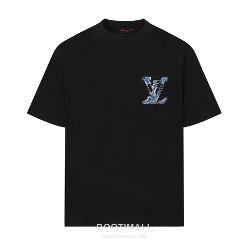 Louis Vuitton Denim Logo Embroidery Cotton T-Shirt Black White 루이비통 데님 로고 자수 코튼 티셔츠 블랙 화이트 |