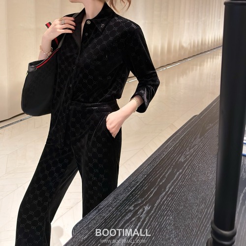 상품 정보 • 구찌 2026 S/S 벨벳 세트 수트는 프리미엄 벨벳 소재와 GG 로고 자카드 패턴이 조화된 럭셔리 아이템입니다.