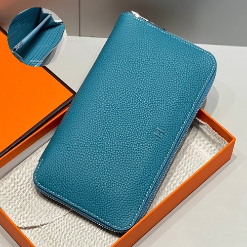 Hermes Togo Leather Denim Blue Long Zip Wallet 에르메스 토고 레더 덴님 블루 장지갑 20cm |