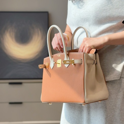 - 에르메스 시그니처 버킨 30cm, 골드/크레 투톤 컬러로 우아하고 세련된 디자인