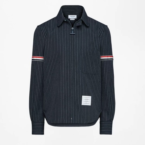 고객님께서 지금보시고 계시는 상품은 Thom Browne의 시그니처 디자인이 돋보이는 핀스트라이프 셔츠입니다. 클래식한 블랙 컬러의 바탕에 정교하게 직조된 핀스트라이프 패턴이 세련되고 고급스러운 분위기를 연출합니다. 소매 부분에는 톰브라운의 상징인 트리컬러 스트라이프 디테일이 적용되어 브랜드 정체성을 확실하게 표현하며, 단정한 카라 디자인과 가슴의 패치 포켓이 실용성과 스타일을 동시에 갖추었습니다. 정통 비즈니스 룩부터 스마트 캐주얼까지 다양한 스타일링이 가능하며, 고급 원단을 사용하여 착용감과 내구성이 우수합니다. 셀러브리티들이 선택한 프리미엄 아이템으로, 고객님의 스타일에 품격을 더해드립니다.