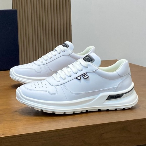 Prada Downtown Leather Sneakers Perforated Logo Rubber Sole 프라다 다운타운 레더 스니커즈 펀칭 로고 러버 솔 화이트 |