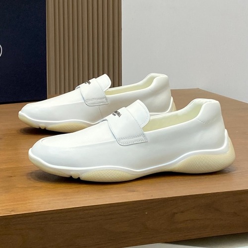 Prada Metallic Logo Calfskin Leather Slip-On Loafer Sneakers 프라다 메탈릭 로고 송아지 가죽 슬립온 로퍼 스니커즈 화이트 |
