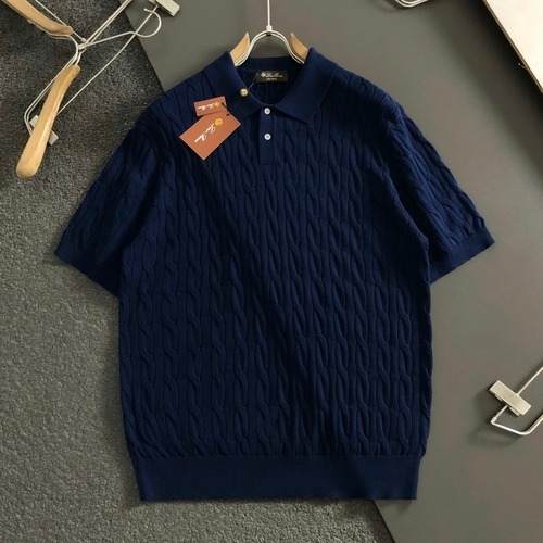 Loro Piana Wool Short Sleeve Knit Sweater Black White Blue 로로피아나 울 숏 슬리브 니트 스웨터 네이비 |