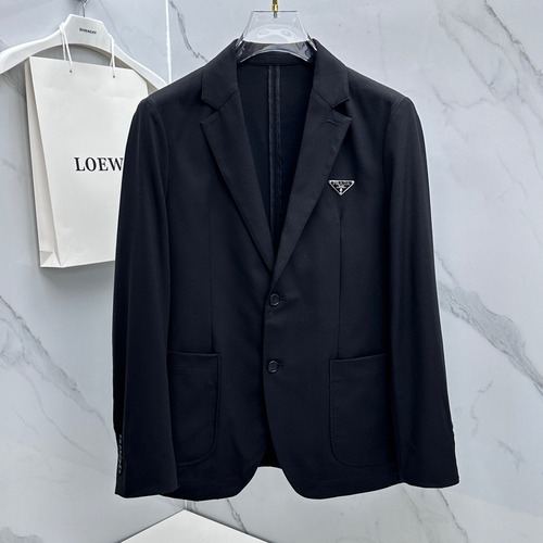 - 맞춤형 혼 버튼과 정교한 스티치 디테일이 프라다의 장인정신을 보여줍니다