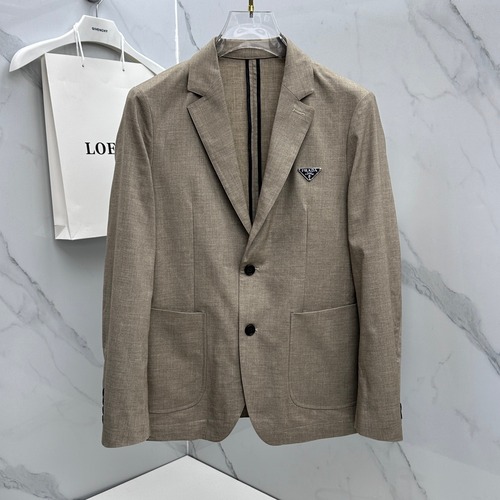 Prada Cotton Linen Blend Tailored Blazer Navy 프라다 코튼 린넨 블렌드 테일러드 블레이저 브라운 |
