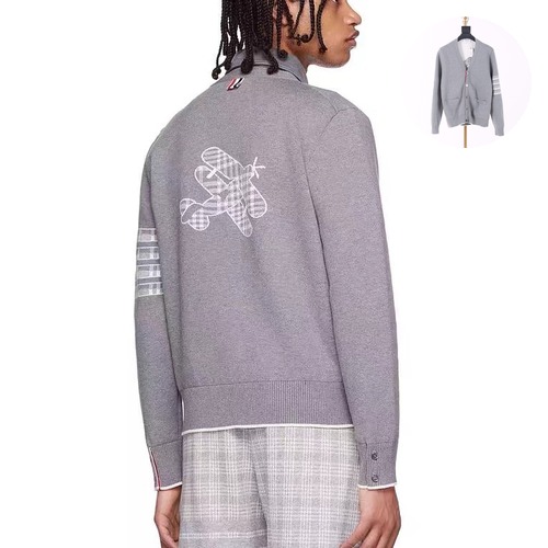 Thom Browne Four Bar Airplane Graphic Wool Knit Cardigan Grey 톰브라운 포 바 비행기 그래픽 울 니트 가디건 그레이 |