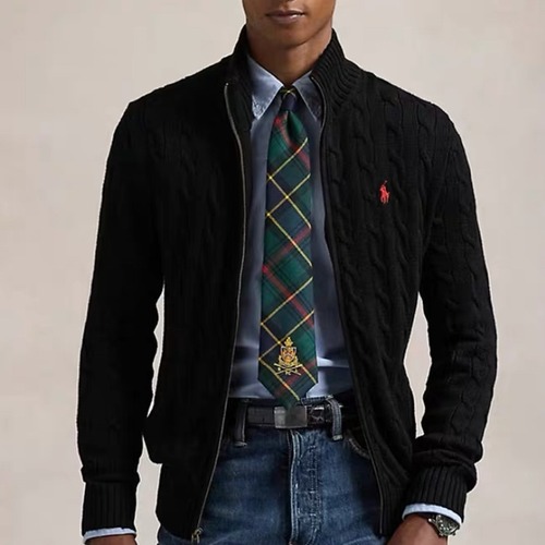 고객님께서 지금보시고 계시는 상품은 Ralph Lauren의 스탠드 칼라 풀 집업 케이블 니트 가디건입니다. 클래식한 케이블 니트 패턴이 전면에 적용되어 전통적인 아메리카나 스타일을 현대적으로 재해석한 디자인입니다. 스탠드 칼라와 풀 집업 구조로 목선까지 따뜻하게 감싸주어 실용성과 스타일을 동시에 만족시켜드립니다. 크림 컬러의 부드러운 색감은 다양한 하의 및 아우터와 레이어링하기 좋으며, 캐주얼부터 비즈니스 캐주얼까지 폭넓게 활용 가능합니다. 랄프로렌 특유의 정제된 실루엣과 세심한 마감 처리로 오랫동안 사랑받으실 수 있는 워드로브 필수 아이템입니다.