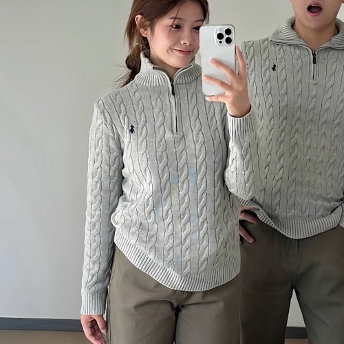 Ralph Lauren Half Zip Cable Knit Cotton Sweater Grey 랄프로렌 하프 집업 케이블 니트 코튼 스웨터 그레이 60091 |