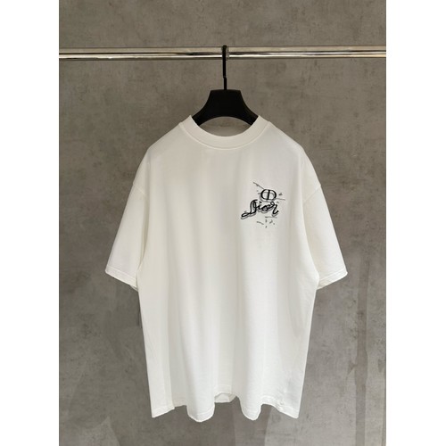 Dior Embroidered Logo Cotton Short Sleeve T-Shirt Black White 디올 엠브로이더드 로고 코튼 반소매 티셔츠 블랙 화이트