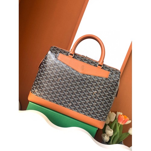 Goyard Cisalpin Briefcase Goyardine Canvas with Calfskin Leather Trim Black & Brown Briefcase 고야드 시잘팽 브리프케이스 고야딘 캔버스, 카프스킨 레더 트리밍 블랙 & 브라운 브리프케이스 39cm |