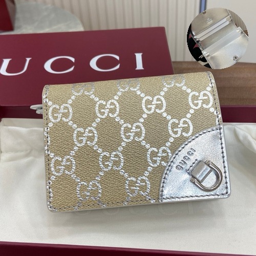 Q. Gucci GG Emblem Wallet GG Laminated Coated 구찌 GG 엠블럼 반지갑 820692 GG 층압 코팅 캔버스 베이지 실버 반지갑 11cm의 가격은 얼마인가요?