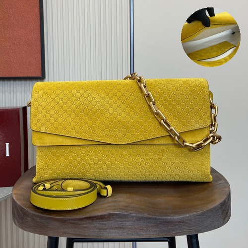 - GG 엠보싱 벨벳 소재로 독특한 질감과 화사한 옐로우 컬러 연출