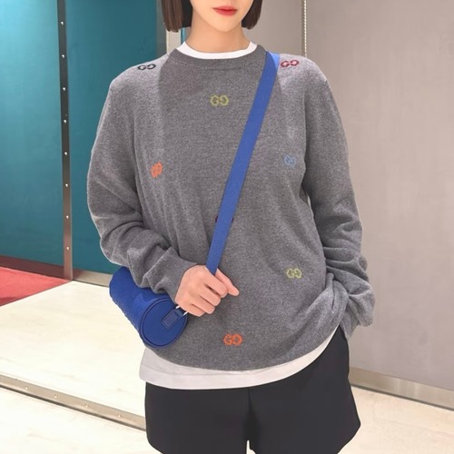 Gucci Colorful Double G Jacquard Knit 구찌 컬러풀 더블 G 자카드 니트 크루넥 스웨터 울 린넨 그레이 스웨터 |