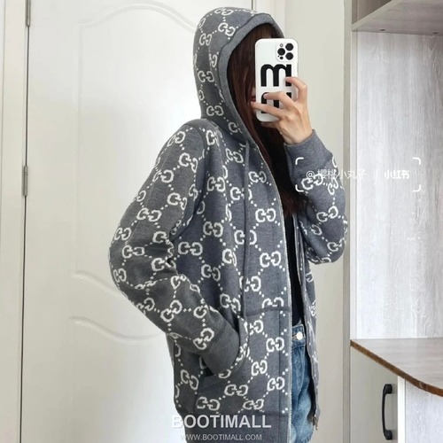 고객님께서 지금 보시고 계시는 상품은 양면 착용이 가능한 혁신적인 디자인의 집업 후드입니다. 한쪽 면은 클래식한 그레이 더블레이어 울 니트 소재로 세련되게 표현되었으며, 다른 한쪽 면은 그레이와 화이트 컬러의 GG 패턴 더블레이어 울 니트 소재로 아이코닉한 감성을 더했습니다. 고급스러운 산양 캐시미어 소재를 사용하여 부드러운 촉감과 뛰어난 보온성을 제공하며, 특수 공정 처리를 통해 내구성과 구김 방지 기능을 강화했습니다. 지퍼 여밈 방식으로 착탈이 편리하며, 고정식 후드에는 조절 가능한 드로우스트링이 달려 있어 실용성과 스타일을 동시에 갖췄습니다. 안감에도 GG 패턴이 디테일하게 적용되어 브랜드 정체성을 명확히 드러내며, 레드-그린 웹 스트라이프 풀탭이 전체 실루엣을 완성합니다. 리넨 혼방부터 나일론 소재까지 다양한 조합으로 GG 패턴을 독창적인 컬러와 배합으로 선보이는 이 아이템은 데일리부터 캐주얼 외출까지 폭넓은 스타일링이 가능합니다.