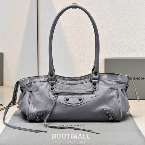 Balenciaga City Shoulder Strap Lambskin Leather Gray Shoulder Bag 발렌시아가 시티 숄더 스트랩 머신 스티치 램스킨 레더 그레이 숄더백 35cm |