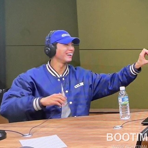 - 블루 컬러 베이스의 베이스볼 스타일 패딩 자켓
